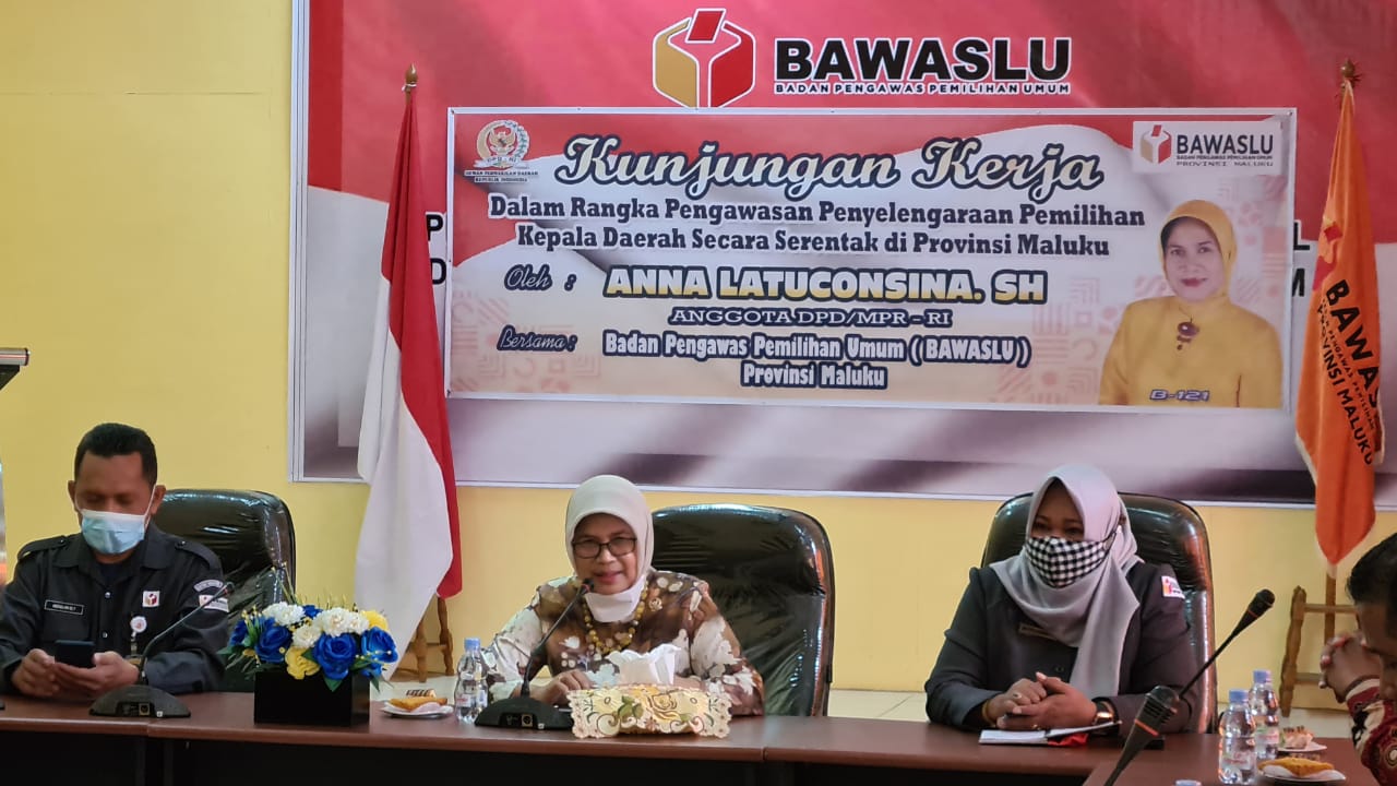 AMBON – Jelang Pemilihan Kepala Daerah (Pilkada) serentan tahun 2020 yang akan berlangsung pada, 9 Desember nanti, Anggota DPD RI Anna Latuconsina melakukan kunjungan kerja ke Badan Pengawasan Pemilu (Bawaslu) Maluku.