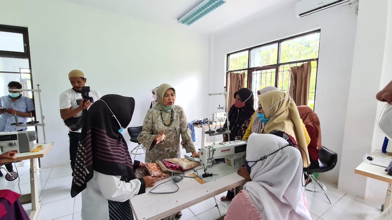 Saat tiba di Balai Latihan, Anna sempat memberikan arahan kepada perempuan-perempuan Maluku yang sedang mengasah ketrampilan mereka dalam menjahit. Anna didampingi oleh Kepala Pengelola BLK Komunitas PE Fatayat Nahdatul Ulama Maluku Harnita.